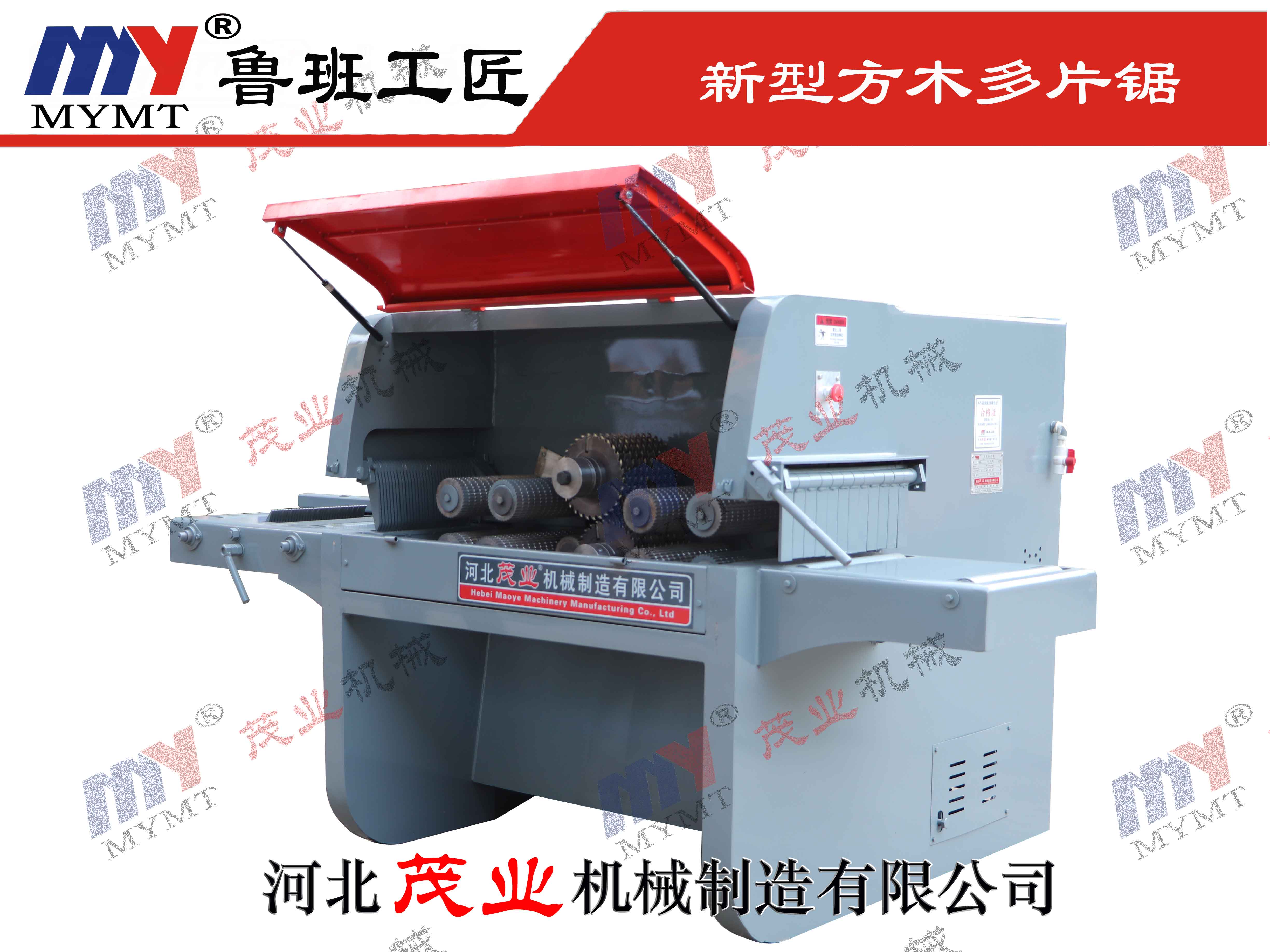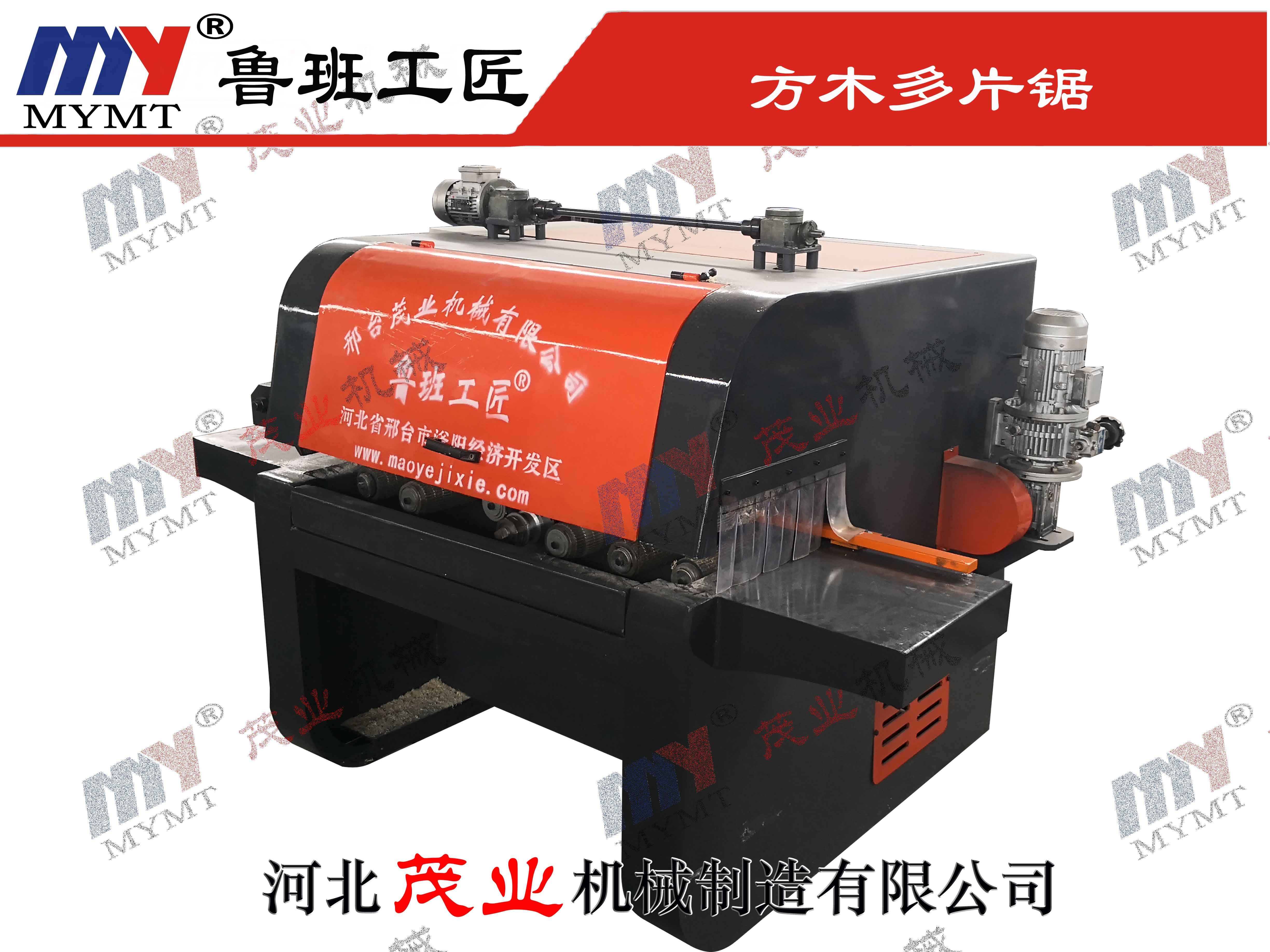 該款方木多片鋸河北茂業機械制造有限公司針對長度小于200cm方木生產加工設計的一款機型,適合加工寬度5-30cm,高度6-15cm的方木。主軸鋸片有效寬度最大30cm,該款多片鋸具有生產效率高,操作維護簡單,出材光潔度高無須壓刨等特點。